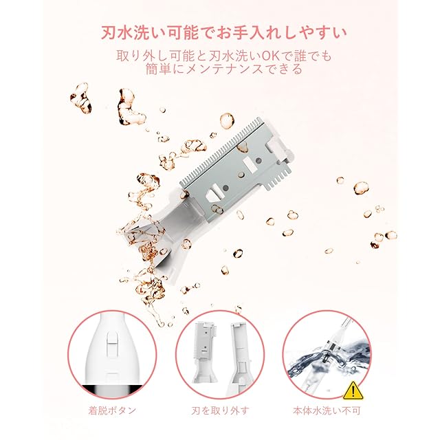【R型刃で肌に優しい&剃り効率高い】R型の丸い刃先の両面ブレードで優しくムダ毛処理できてキズや赤みも防ぎます。抗アレルギー性ステンレスブレードを使用しており、肌に直接触れないため炎症を起こしません。カミソリや毛抜きに比べてもっと肌に優しい!メイクの上からも使え、気づいたときにサッとお手入れできます。メイクのノリがよい肌を実現!高速&強力なモーターを内蔵しているので下から上へ高速回転し、スピーディーにカッティングできます。