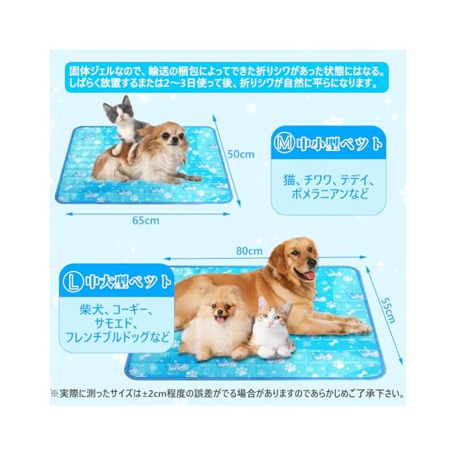 【多用途で色んな使い方】:夏用 冷却マットは犬、猫、ウサギなどの動物だけでなく、人間や子供にも使えます。椅子用マット、車席のマット、ノートパソコンマットとしても大活躍でき、暑い夏でペットや人間に適度な冷たさで涼感を与えてくれます!M(50*65CM)・L(55*80CM)サイズの2種類あるで、猫、ウサギ、小型犬、中型犬、大型犬など様々なペットに適応できます。ペットの大きさに合わせてサイズ選んでいただけます。