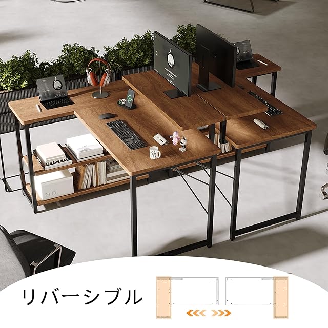 商品名:Merytes パソコンデスク 机 学習机 勉強机 computer desk ゲーミングデスクワークデスクL字デスク 棚 付き pc 省スペース 組立簡単 在宅勤務