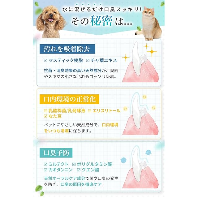 【飲み水に混ぜるだけの簡単口臭ケア✨】普段の飲み水に混ぜるだけで給水タイムがデンタルケアに!口臭ケア歯石除去(歯石取り)お口スッキリ!!口腔ケアウォーターで口腔内を清潔に保って口臭予防!歯磨きが嫌いな子でも楽々ケア!