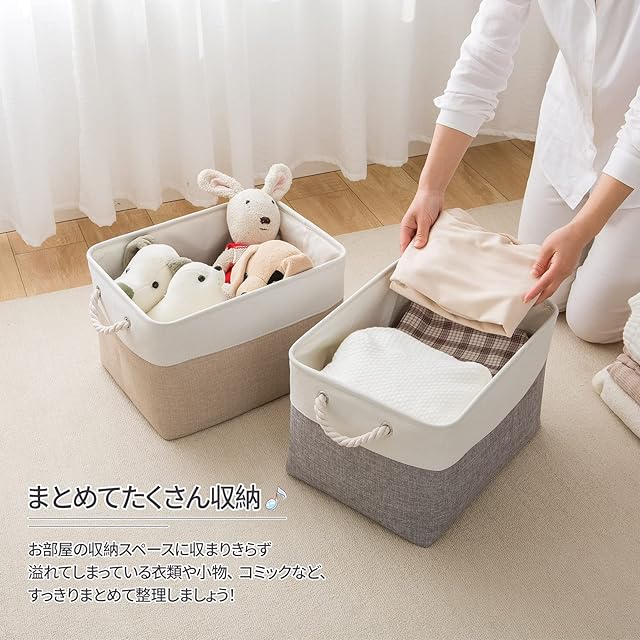 【様々なシーンに大活躍】シンプルでニュートラルな雰囲気を感じられるアウター生地は和風や洋風など、ほぼ全てのインテリアに馴染みやすいです。オシャレな収納ボックスが3個セットで衣類収納、おもちゃ入れ、ベビー用品収納、化粧品収納やアクセサリー小物などの保存ボックスとしても活躍できます。用途が幅広くてきれいな家づくりに役立ちます。