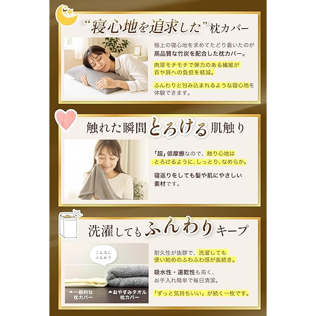 ✅【極上の寝心地】タオルで寝る人に極上の寝心地を追求した『睡眠専用おやすみタオル枕カバー』。繊維の間にたっぷりの空気を含み、ふんわりと包み込まれるような心地良さ。