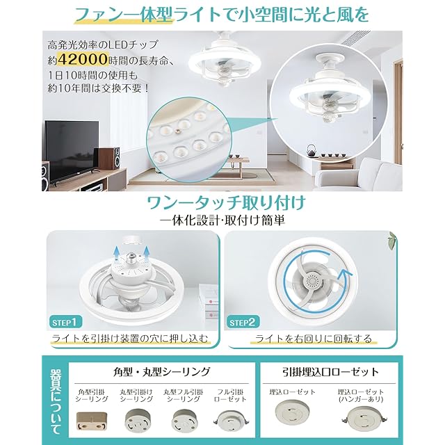 【多種E26取り付け方法・PSE認証・1年安心】ニーズに応じて角形や丸型引掛シーリングなど多種E26種類の埋め込みローゼットや引掛けシーリングを選べ、本体をそのまま取り付けることが可能になりました。本製品は工事不要、取り付け簡単なシーリングファンライトです。説明書に従って簡単に取り付けられます。簡単な構造でお手入れも易いです。本製品は日本PSE認証済みで安心、安全にご利用いただけます。障害の発生による消費者への危険が防止され、安全使用がされます。さらに、お買い上げの日付より12か月以内のメーカーが付いており、正しい使用方法において、初期不良やご使用中に何か不具合がある場合には、お気軽にカスタマーサービスーにお問い合わせ下さい。お問い合わせ方法:「商品の詳細ページ」→「店舗名」→「質問する」ボタン→質問します。アフターサービスの場合は17位の注文番号をお教えください。