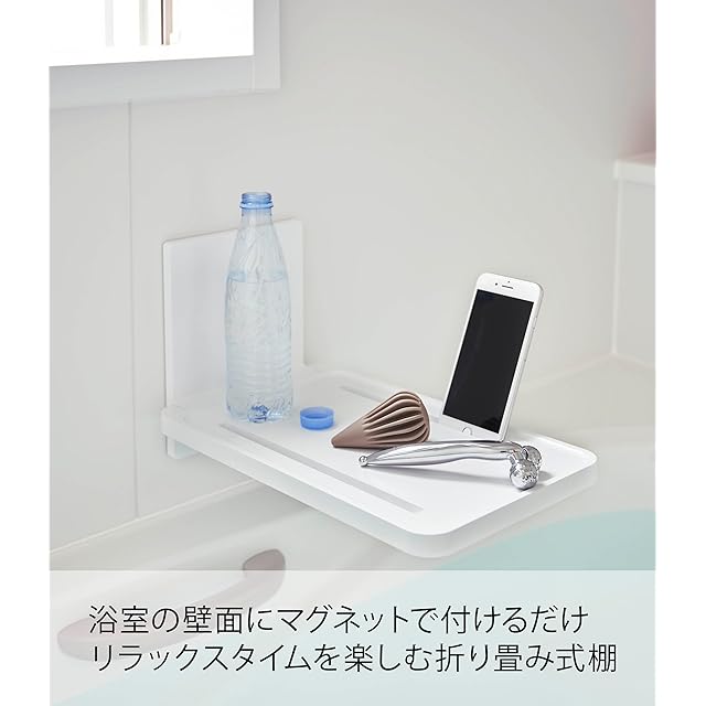 山崎実業(Yamazaki) マグネット バスルーム 折り畳み 棚 ホワイト 約W22XD38.7XH22cm タワー 簡単取付 省スペース 5532