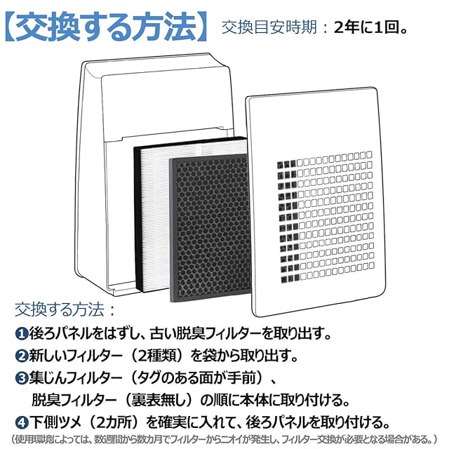 【交換目安】2年に1回。(使用環境によっては、数週間から数カ月でフィルターからニオイが発生し、フィルター交換が必要となる場合がある。)