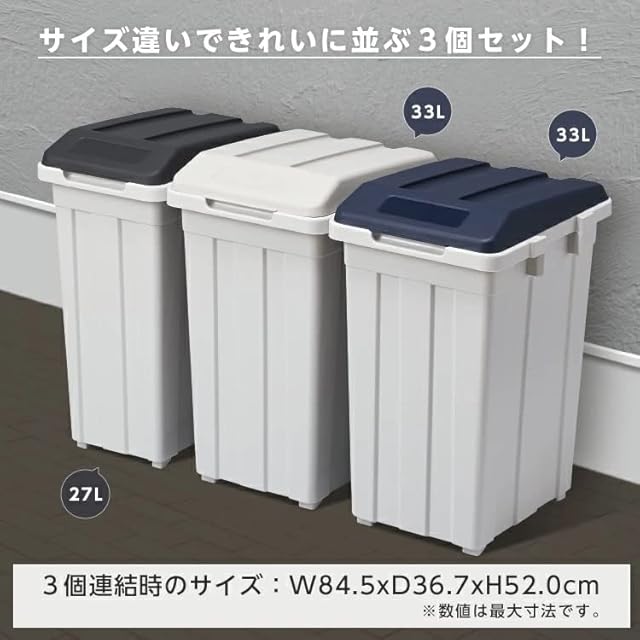 商品名:アスベル フタ付きゴミ箱 屋外 33L・33L・27L ジョイント分別3個セット ジョイントできる 白、青、黒 カラーで分別 A6644
