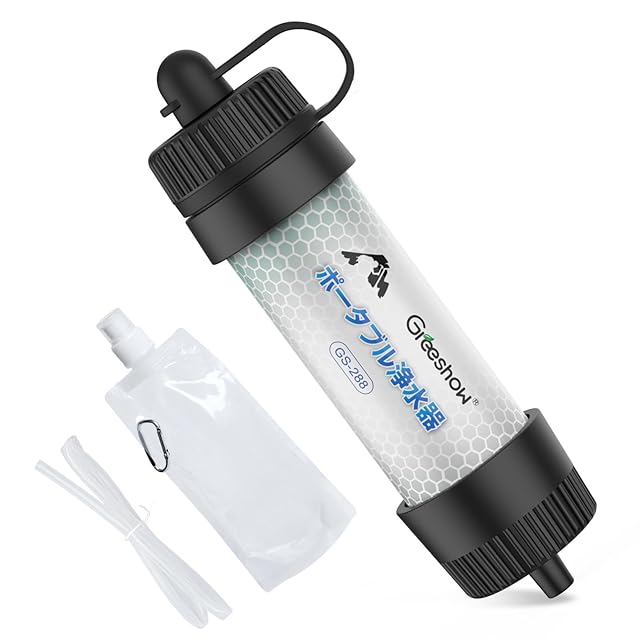 Greeshow携帯浄水器 8000L浄水量 アウトドア・防災 濾過器 キャンプ・登山・地震対策 中空糸膜 フィルター交換不要 軽量コンパクト 非常用防災グッズ