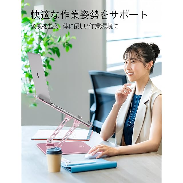 商品名:ツビワ(ToBeoneer) ノートパソコンスタンド PCスタンド タブレットスタンド laptop stand 液タブホルダー 折り畳み式 卓上 高さ角度調整 人間工学 姿勢改善 在宅ワーク アルミ製 ZOOM会議 Macbook,iPad,15.6インチまでのノートPCやタブレットに対応 (ピンク)