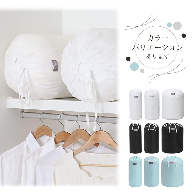 商品名:アストロ 収納袋 ホワイト Lサイズ 2枚組 丸めて簡単収納 羽毛布団収納 巾着袋 収納バッグ 筒型 縦置き 積み重ね保管 626-06