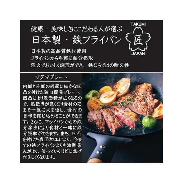 素材・材質:マグマプレート(鉄)、取っ手:天然木(ブナ材) 取っ手取付金具:アルミダイキャスト