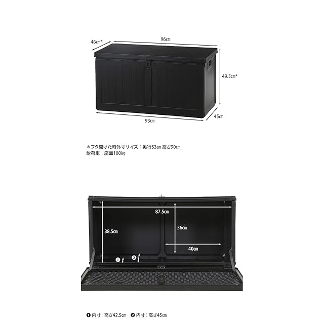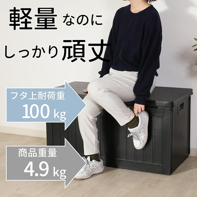不二貿易 物置 収納庫 屋外 190L 防水タイプ 鍵穴つき 収納ベンチ 収納ボックス 組立商品 幅96×奥行46×高さ49.5㎝ ブラック 55252