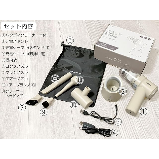 商品名:【家電批評 BEST BUY受賞/宝島社MonoMax掲載】ハンディクリーナー 多機能 コードレス ミニ掃除機 充電式 スタンド充電 クリーナー 車用 ALTENA アルティーナ エクリュベージュ
