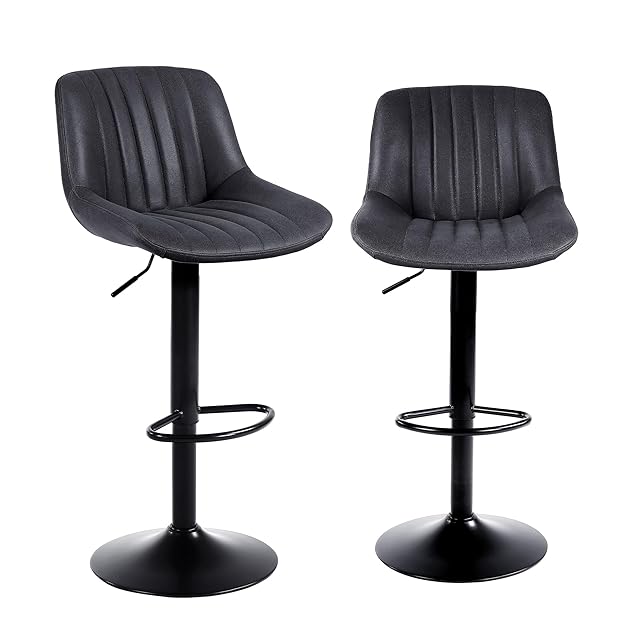 Youhauchair カウンターチェア 2脚セット 背もたれ ハイチェア 調節可能 回転バーチェア 足置き 昇降式ハイチェア フェイク PUレザー キッチンチェア ブラック