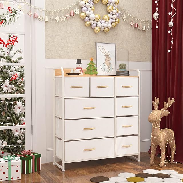 LYNCOHOME チェスト タンス 布製 ベージュ 収納 引き出し 簡単組立 多機能 衣類収納 大容量4段9杯 【幅87.5×奥行29×高さ99.5cm】