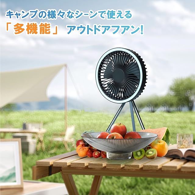【1台3役の屋外扇風機】:ファンは卓上/三脚/吊り下げ式で、固体アルミニウム合金製で、屋内および屋外のさまざまなシーンに適しています。 3速風速設計により、ニーズに応じて異なる風量を選択でき、エネルギーを節約しながらさまざまな強度のニーズを満たすことができます。 【卓上静音扇風機】:高品質の静音ブラシレスモーターを採用し、静かな動作を実現し、干渉を軽減し、特に勉強、仕事、夜間睡眠時の使用に適しています。 1H/3H/5Hタイマーシャットダウン機能が内蔵されており、自動シャットダウン時間を設定できるため、必要に応じてファンをオフにすることを忘れないようにすることができます。 【耐久性のある素材】:キャンプ扇風機は高品質のABS素材で作られており、耐衝撃性と耐久性に優れており、さまざまな環境やアクティビティでの使用に適しています。登山、釣り、ハイキング、キャンプなどのアウトドア活動だけでなく、オフィス、教室、図書館、家庭などの日常使いにも適しています。 【USB充電式キャンプ扇風機】:10000mAhの大容量バッテリーを搭載しており、ファンはUSB to TYPE-C充電方式をサポートし、コンピューター、車の充電器、モバイル電源などの方法で充電できます。充電式で長時間ワイヤレス使用可能。 【LED補助照明】:ファンにはLEDライト機能と3段階の照明モードがあり、夜間や緊急時に照明を提供でき、利便性が向上します。