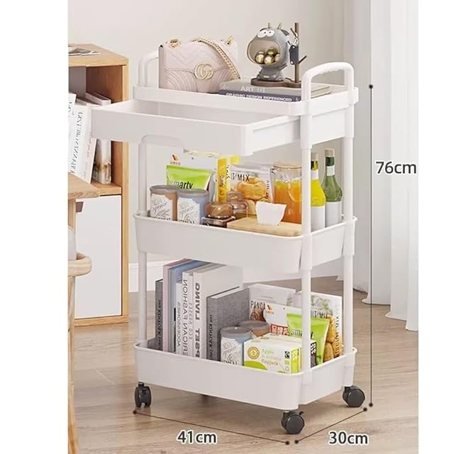 商品名:VARMHUS キッチンワゴン キッチンラック 収納ラック キャスター付き 引き出し付き スリムワゴン 3段 キッチン収納 隙間収納 小物収納 おしゃれ 耐荷重性≥12kg 幅41*奥行き30*高さ76cm ホワイト
