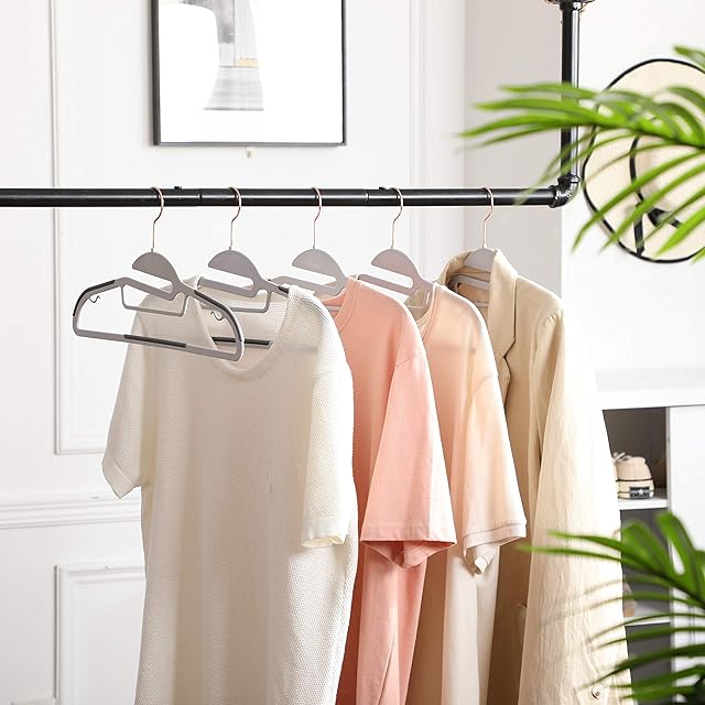 SONGMICS ハンガー 型崩れしない tシャツハンガー 20本洗濯収納兼用ハンガー すべらない 襟を守る 省スペース スリム プラスチックハンガー 多機能 360°回転 グレー CRP41G