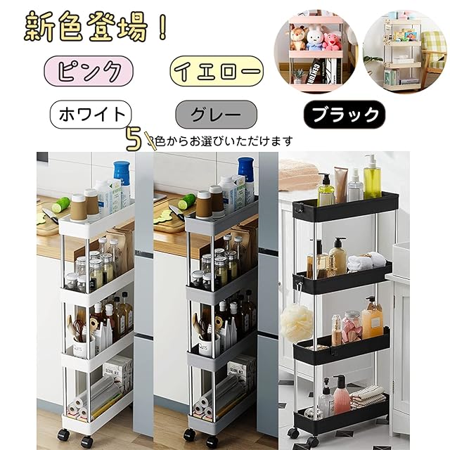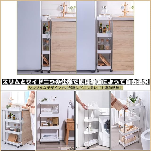【シンプルで実用的、シーンを選ばないワゴン・カート】 細身設計の収納ラックは、部屋、キッチン、ランドリー、脱衣所、冷蔵庫、洗濯機や洗面台などの場所での使用に最適で、省スペースで、隙間を活用することができます。製品材質:ステンレス+ABS。耐久性のあるプラスチック素材で作られており、軽量で移動しやすいです。壁や隙間に寄りかからない場合、安定性を高めるために、洗剤などの重いものを下に置くことをオススメいたします。カゴはメッシュ状なので、通気性・排水性が良く、汚れが落ちやすくカビの発生も防ぐことができます。