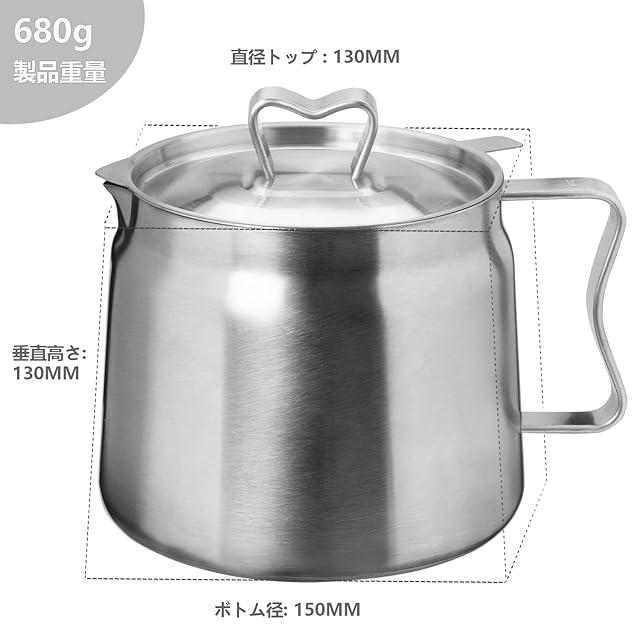 商品名:オイルポット 油漉し器 油ポット ステンレス製 1.5L容量 680g重量 底部広くて厚い 重心安定 漏れない拡大口径 W15×H16.5cm コンパクト収納 フィルターネットと蓋付き