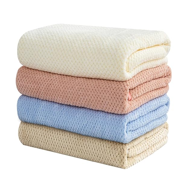 SONEIHOMIE バスタオル 大判 4枚セット 70*140cm ふわふわ 羽落ち少ない マイクロファイバー 瞬間吸水 肌触りタオル