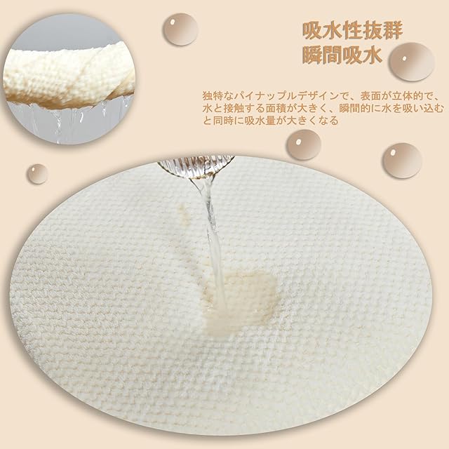 【吸水性抜群、瞬間吸水】綿の素材より吸水性が優れます。独特なパイナップルデザインで、表面が立体的で、水と接触する面積が大きく、髪や肌にそっと当てるだけで水分が吸収される、瞬間的に水を吸い込むと同時に吸水量が大きくなります。