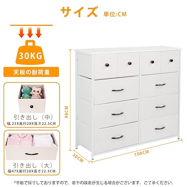商品内容:奥行30cm x 幅100cm x 高さ98cm (引き出し数 10)