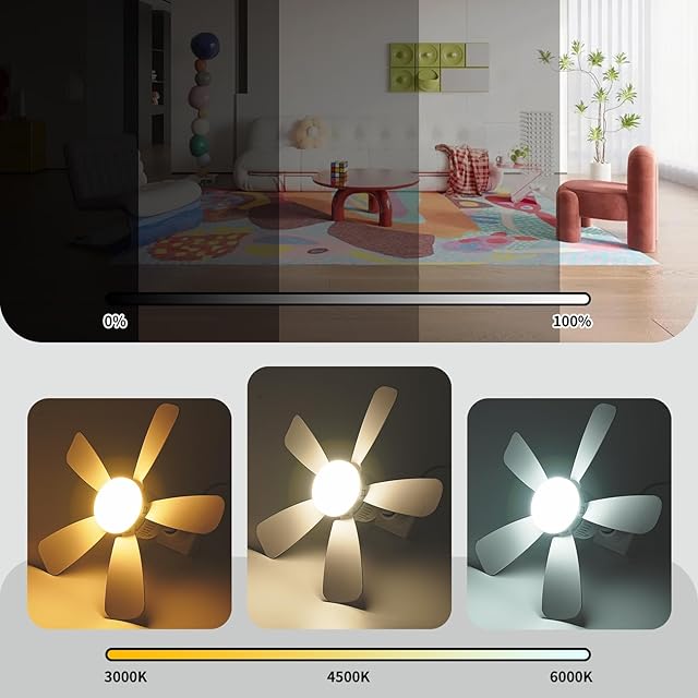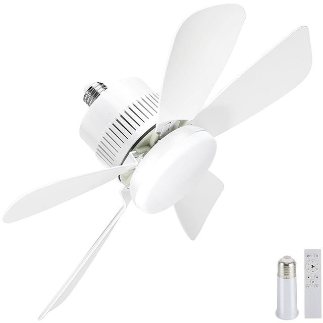 ソケット式ライトファン リモコン付き(ペアリングが必要です)|E26/E27ソケット専用 小型シーリングファンライト|強力ターボ送風・静音設計・メモリー機能・調光対応(最大1000LM・CRI 80+)|寝室・書斎・ガレージ・ワンルームに最適