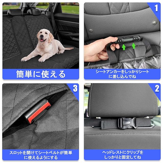 車の後部座席を守る: この犬用車シートカバーで、後部座席の汚れやペットの毛をしっかりガード。高品質な防水オックスフォード生地で、車を傷や汚れから守り、犬も快適に過ごせます。