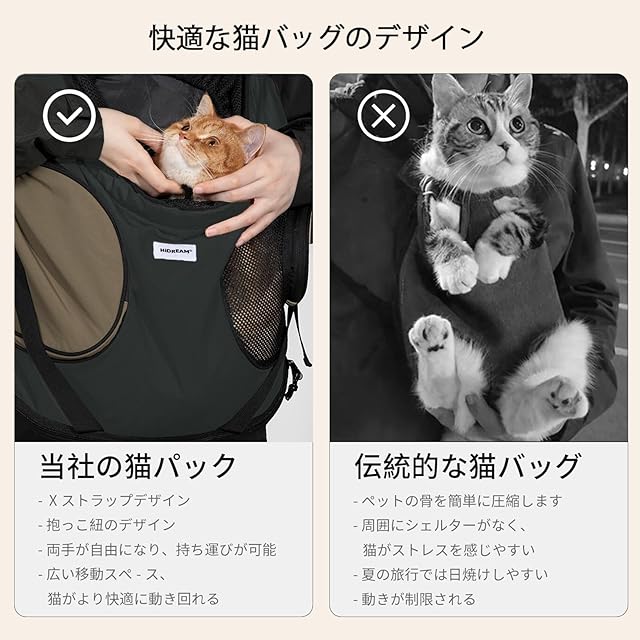 [ 前抱きユニークデザイン] 人体工学的デザイン、三角形の分散受力により頚椎をサポート、より丈夫で快適で;犬 抱っこ紐携帯する方が楽です肩ひもの質を心配する必要はありません。X型のクロスショルダーストラップご主人様の肩への負担も最大限に減り、また調節可能なストラップは身長に合わせて調節できます;通常のバックパックとしても使用可能