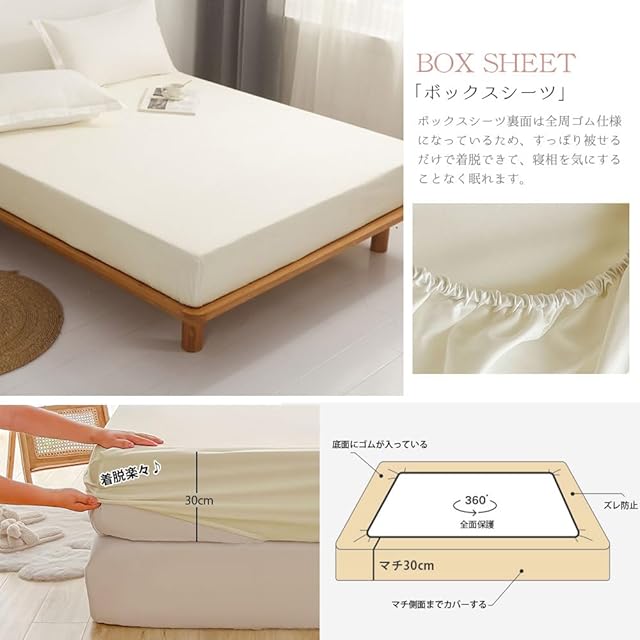 【寝具カバーセット】布団カバー出し入れしやすいファスナー全開タイプが使いやすい、紐付き、カバーの中で布団がずれて偏ってしまうのを防ぐためのものです。ボックスシーツ裏面は全周ゴム仕様になっているため、すっぽり被せるだけで着脱できて、寝相を気にすることなく眠れます。封筒型枕カバーで取り換え楽々!抗菌・防臭加工、肌の敏感な人や子どもすすめ!