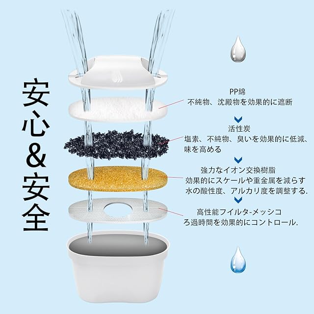 【安心 & 環境に優しい】 私たちの生活の中で、ろ過され、浄化された水を使用することは、直接飲むためであれ、料理のためであれ、私たちに安心感を与え、私たちの健康を守る最良の方法です。 また、ペットボトル入りの飲料水の購入を減らすことは、プラスチックごみの削減にもつながります。