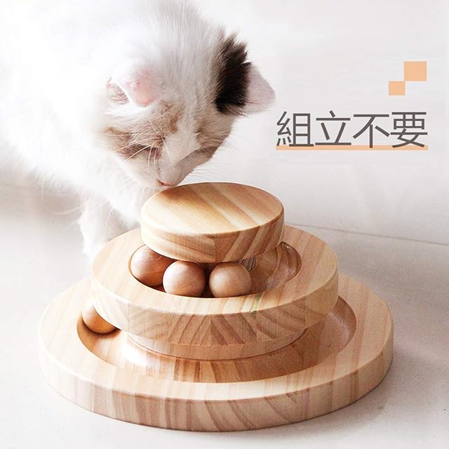 Aritan 猫のおもちゃ ペット用品 遊ぶ盤 ペット 回転 ボール 猫じゃらし おもちゃ 運動不足 ストレス解消 知育 玩具 安全素材 木製 ナチュラル
