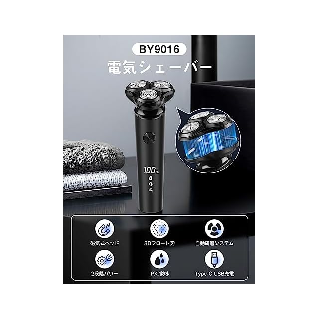 商品名:シェーバー ひげそり 電動シェーバー 【2025新進化】 髭剃り 電気シェーバー メンズ 360°回転式 高速回転モーター 2段階調節 深剃り USB充電式 急速充電 低騒音 IPX7防水 お風呂剃り可 乾湿両用 LEDディスプレイ付き 軽量 父の日 彼氏 プレゼント ロック機能 海外対応(金色)