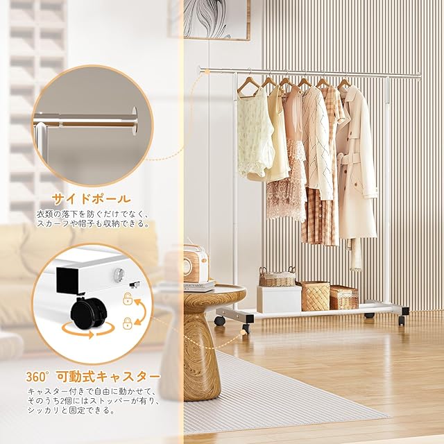 ❤【安全ロック付きキャスター】:ハンガーラックには360°可動式のキャスターが付いているので、洗濯物を乾かしたいときや大掃除のときなど、自由に移動させることができで、とても便利です。キャスターには安全ロックがついているので、ハンガーラックが勝手に動いてケガをする心配もありません。ハンガーラックを固定するときは、安全ロックをかけるだけ。