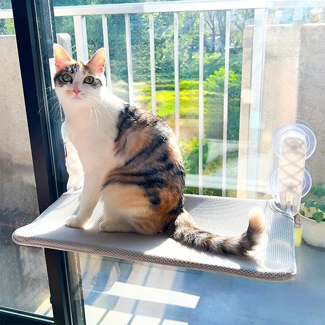Konshun公式オリジナル正規品【2024年改良型】猫 窓用ハンモック 窓 ベッド 強力 大型 吸盤式 猫 ハンモック 窓 窓際見晴らし台 折畳み 上向きデザイン 専用両面テープ9個付 取り付け・移動が簡単 夏冬兼用 2種類の生地 両面で使用 洗濯可能 手入れが簡単 52×30cm 耐荷重20kg 日本語説明書 365日間返金(本体+布カバー 1枚)