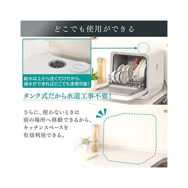 質量:約13kg●コードの長さ:約2m● タンク容量:約5L●洗浄方式:回転ノズル噴射式●すすぎ方式:ため濯ぎ●乾燥方式:送風乾燥●収納容量: 15点(大皿2点・中皿2点・小皿2点・小鉢2点・茶椀2点・汁椀2点・コップなど3点)、小物(箸・スプーン等)●時間の目安: 1時間30分●運転コース: 5コース※商品仕様は予告なく変更することがあります。