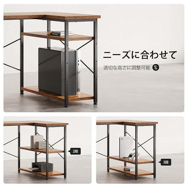 商品名:Maihail パソコンデスク l字デスク 机 勉強机 学習机 右棚左棚 幅120cm pcデスク コーナーデスク 本棚付き 引き出し付き 幅120cm ピンテージ