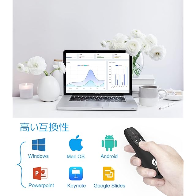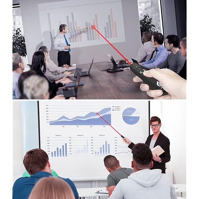 ●【遠隔コントロール】プレゼンターリモコンは2.4 GHzUSBワイヤレス長距離リモート技術を使用し、49フィート(約15m)の範囲でラジコンプレゼンができます。プラグとプレイ2.4 GHzワイヤレス受信機で追加のソフトウェアのダウンロードとドライバのインストールは要らないです。