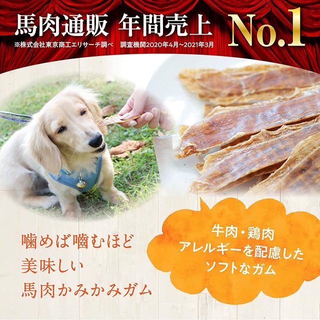 #5 \アレルギー持ちのワンちゃんのおやつ探しは大変ですか?/ 低アレルゲンと言われる馬肉のみ使用のため、牛肉や鶏肉アレルギー持ちのワンちゃんに配慮したかみかみガムです!