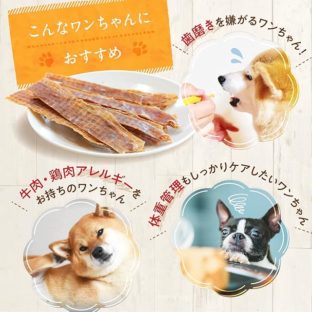 #3 \ソフトな食感!シニアのワンちゃんもおすすめ!/馬のヘルシージャージャーキーや馬肉アキレスジャーキーと比べてソフトで柔らかく、縦に沿って簡単に割けます。歯が弱くなったワンちゃんにも配慮した食べやすいガムです。※ご注意※歯が生えそろった生後6か月以上からお与えください。堅いものに慣れていないワンちゃんは年齢にかかわらず監視のもとお与えください。 ※繊維に沿って、縦に割く場合は手でも割ける硬さとなります。また横に割く場合でもハサミで簡単に切ることが可能です。