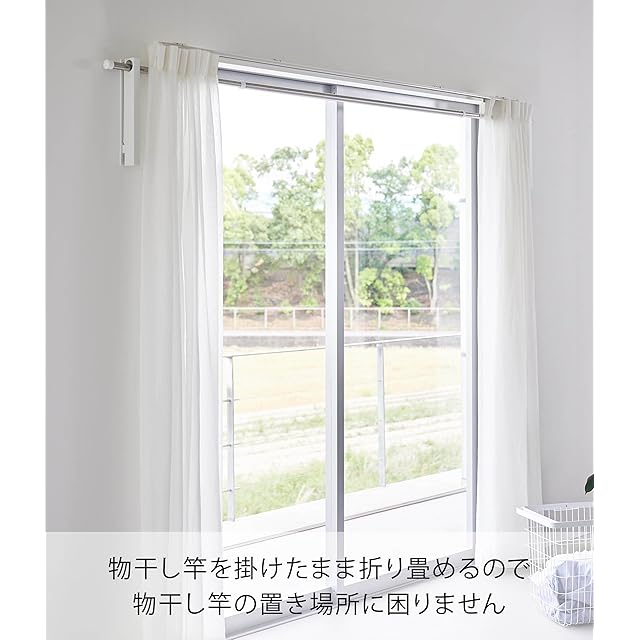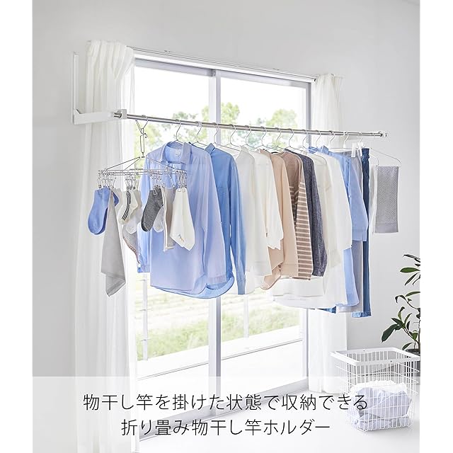 商品名:山崎実業(Yamazaki) 【石こうボードピンセット・木ネジ 付属】 ウォール 折り畳み 物干し竿ホルダー 2個組 石こうボード壁対応 ホワイト 収納時:W4×D6×H33.5cm(1つあたり) タワー tower 物干し竿を掛けたまま収納 室内物干し 1921