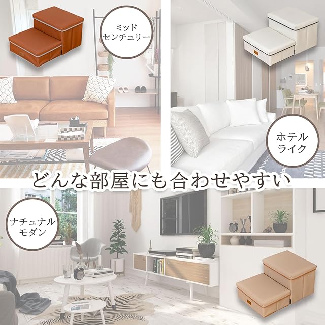 ステップ本体はPVC100%を使用、PVC素材は耐久性、撥水性があり長持ち 汚れてもPVC素材なので水や中性洗剤でサッとひと拭きお手入れかんたん。 ステップ台にはウレタンフォームを使用しており、クッション性が高い為、ペットさんの足を優しく包み込みます。 折り畳み可能でコンパクトサイズ、使わないときは畳んで収納いただけます。
