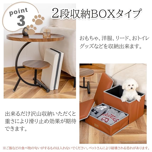 ドッグステップ PVCレザー 清潔に使える 犬 階段 収納可能 踏み台 スロープ (3色選べる)レザー調 2段 ソファー ペット ヘルニア 小型犬 室内犬 ミニチュアダックス チワワ プードル シーズー ポメラニアン 折り畳み式 猫 負担軽減 高齢犬 シニア犬 介護 おもちゃ、服、ブランケットなど2箱のボックスで収納もできる