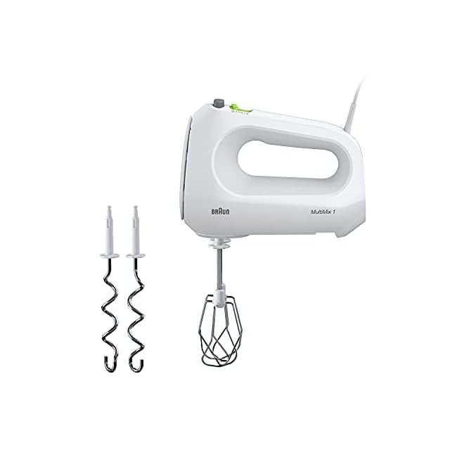 商品名:ブラウン ハンドミキサー マルチミックス1 HM1010WH 軽量コンパクト 静音 150W ハイパワー 4段階スピード ターボ 握りやすい 持ちやすい 簡単操作 お手入れ簡単 食洗機 ドイツ設計 ビーター 泡立て 生クリーム お菓子作りニーダー こねる パスタ パン パンケーキホワイト