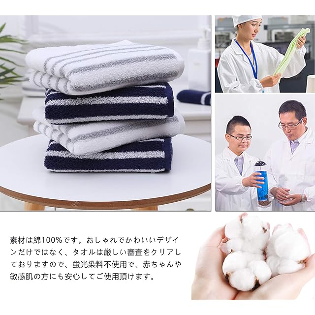 【厳選された綿100%の素材】素材は綿100%です。染色堅牢度は4級に達し、色移りや毛羽落ちがなく、何回洗濯しても変形しなくて、超長持ちタイプです。おしゃれでかわいいデザインだけではなく、タオルは厳しい審査をクリアしておりますので、においがありません、蛍光染料不使用で、赤ちゃんや敏感肌の方にも安心してご使用頂けます。