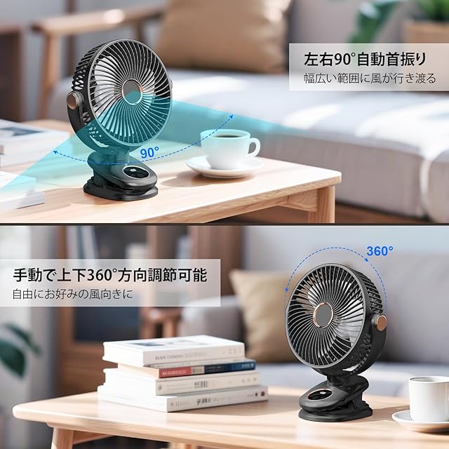 商品名:iNeibo USB扇風機 卓上扇風機 【自動首振り&10000mAh電池内蔵】 キャンプ扇風機 USBファン サーキュレーター 卓上 小型 クリップ LEDライト搭載 TYPE-C急速充電 風量5段階調節 最大40時間連続使用 電池残量表示 コードレス パワフル送風 壁掛け 車用 防災 キャンプ アウトドア 車中泊 熱中症対策 ブラック