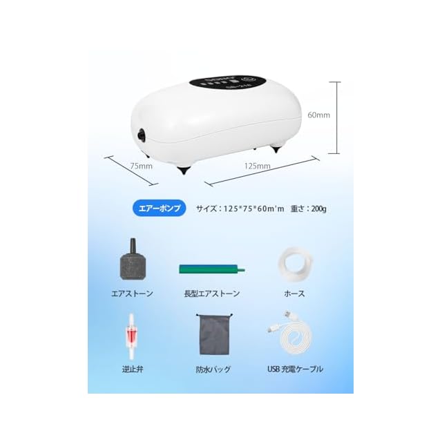 エアーポンプ 釣り USB充電 エアポンプ USB充電 2600mAh電池 消音30db 携帯式 酸素提供ポンプ 連続25時間 間欠モードでは50時間動作