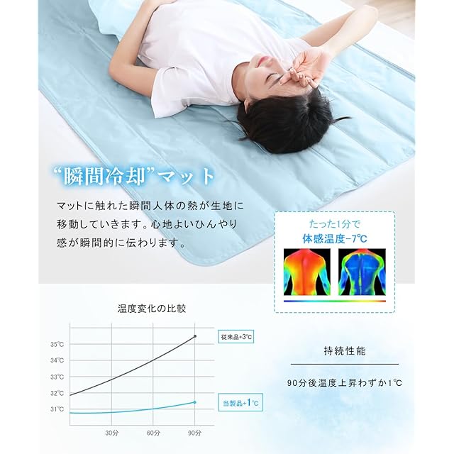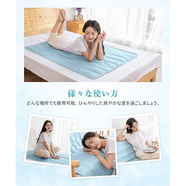 【驚き冷却効果】夏の夜に暑くて寝苦しいということにお悩みありませんか?ひんやりと快適な睡眠ができるジェルマットがおすすめです。接触冷感の基準値はQ-max0.2で、本製品の接触冷感はQ-max 0.58です。基準値の3倍以上に達します。体が触れていない部分は温度が下がり、冷却効果が自然に復活します。