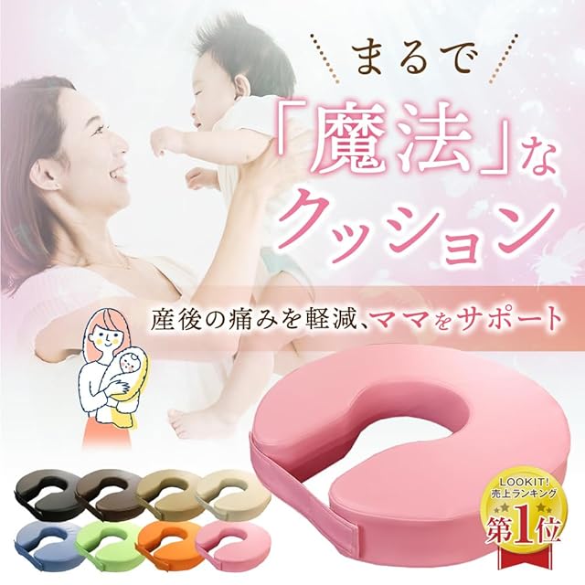 産後・手術後の痛み対策に! お客様の声をもとに開発されたLOOKITオリジナルのU字クッションです。 病院で使用されているものと同仕様を実現! 外れやすいという声が多かったマジックテープ部分を強化しています。 産後のプレゼントにもオススメです。
