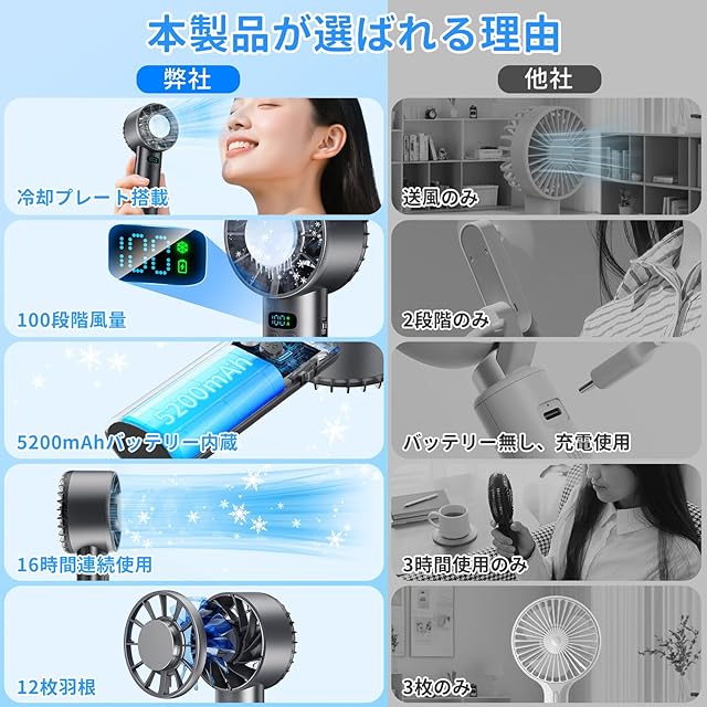 ハンディファン 冷却プレート搭載 「2025夏NEWモデル・瞬間冷却-18℃・16時間連続使用」 Bingoods 携帯扇風機 大風量 冷感 手持ちファン ハンディ扇風機 100段階風量調整 クーラー機能 ミニfan 熱中症対策 USB充電式 静音 小型 5200mAh大容量バッテリー搭載 ストラップ付き (ブラック)